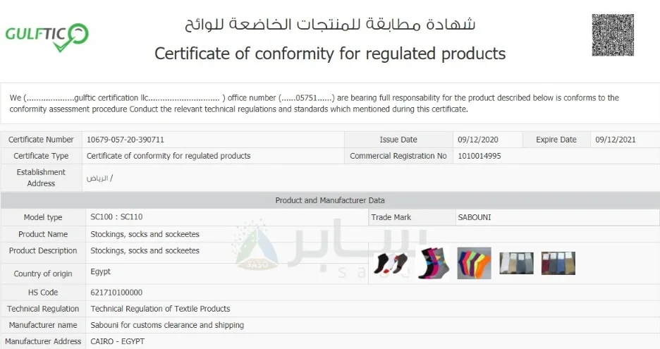 شركة شامينا لصناعة الجوارب حاصلة على شهادة ثابر المتخصصة بتسجيل المنتجات المصنعة طابقاً لمواصفات و مقاييس الجودة السعودية و الدولية.