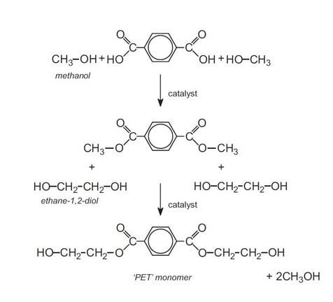 يُحضَر أوّلًا المونومير بتفاعل مركب Ethane-1,2-diol  إمّا مع حمض التيرفثاليك،